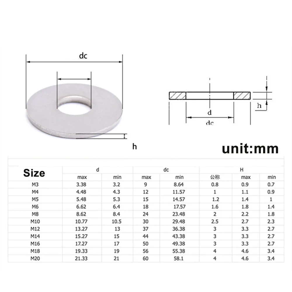 DIN9021 M2.5 M3 M3.5 M4 M5 M6 M8 M10 M12 M14 M16Antiskid Grande Arruela Plana Um Tipo SUS304 Aço Inoxidável Grande Junta Arruelas Lisas