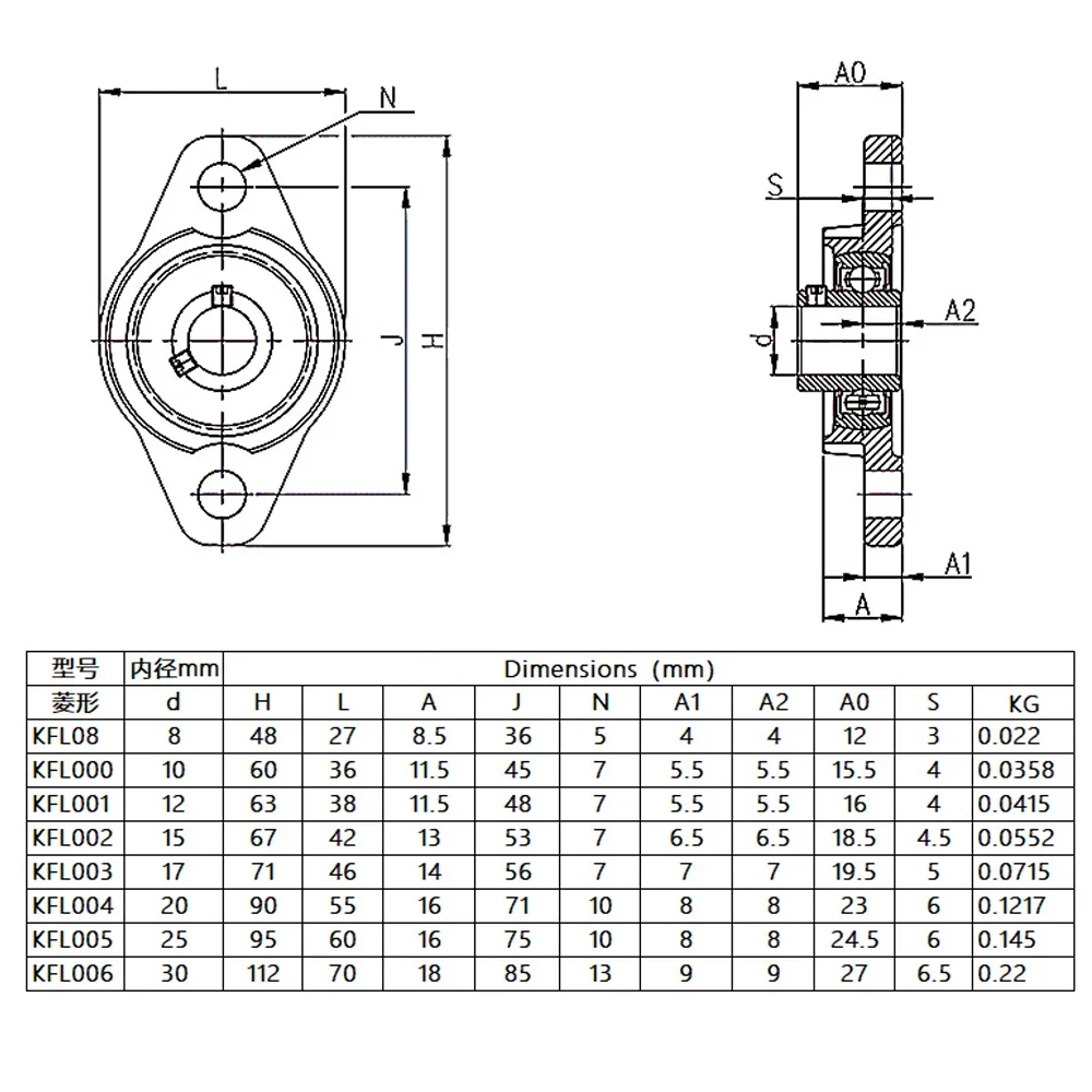 Nome do produto: Bore Ball Bearing Pillow Block Montado Suporte Liga de Zinco Diâmetro 8mm - 20mm KFL08 KFL000 KFL001 KP08 KP000 KP001 KP002 Aço