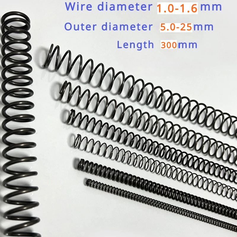 Nome do produto: Spring Steel Compression Spring Diâmetro do fio: 1-1.6mm Diâmetro exterior: 5.0-25mm Comprimento: 300mm Material: Aço da mola Especificações: Diâmetro do fio (d) * Diâmetro exterior (D) * Comprimento (L) Características: Textura ligeiramente dura, durável, econômica, não resistente ao bordado