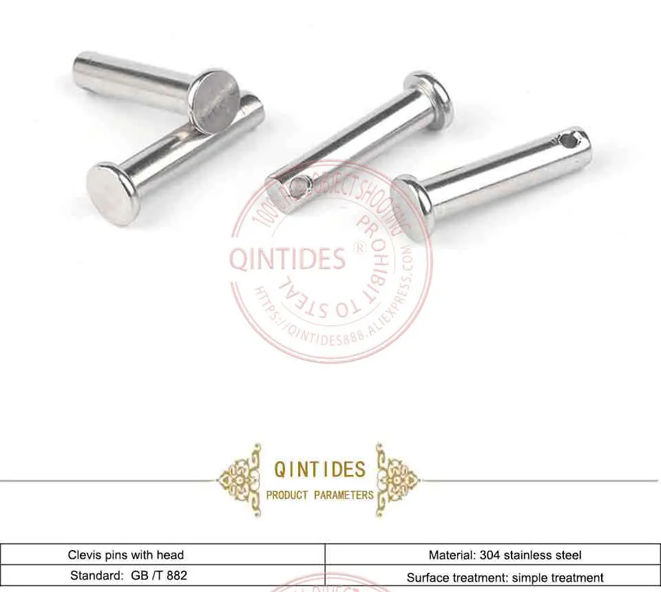 QINTIDES-304 Cabeça chata do eixo de aço inoxidável com furo, M10-M16, pino c
